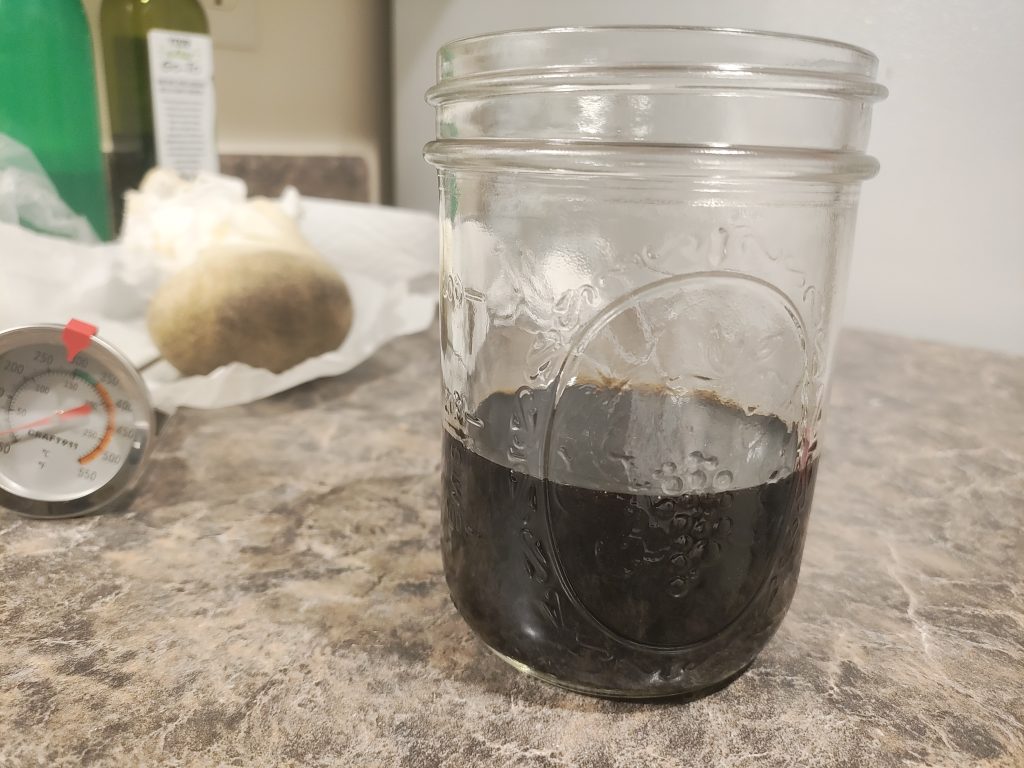 You will always end up with slightly less oil than you started with. Some of it might get cooked off or lost in the cheese cloth or left in herb ball. At this point you can pour the oil into a mason jar and be done. I usually just cook it right into edibles if I have the time.